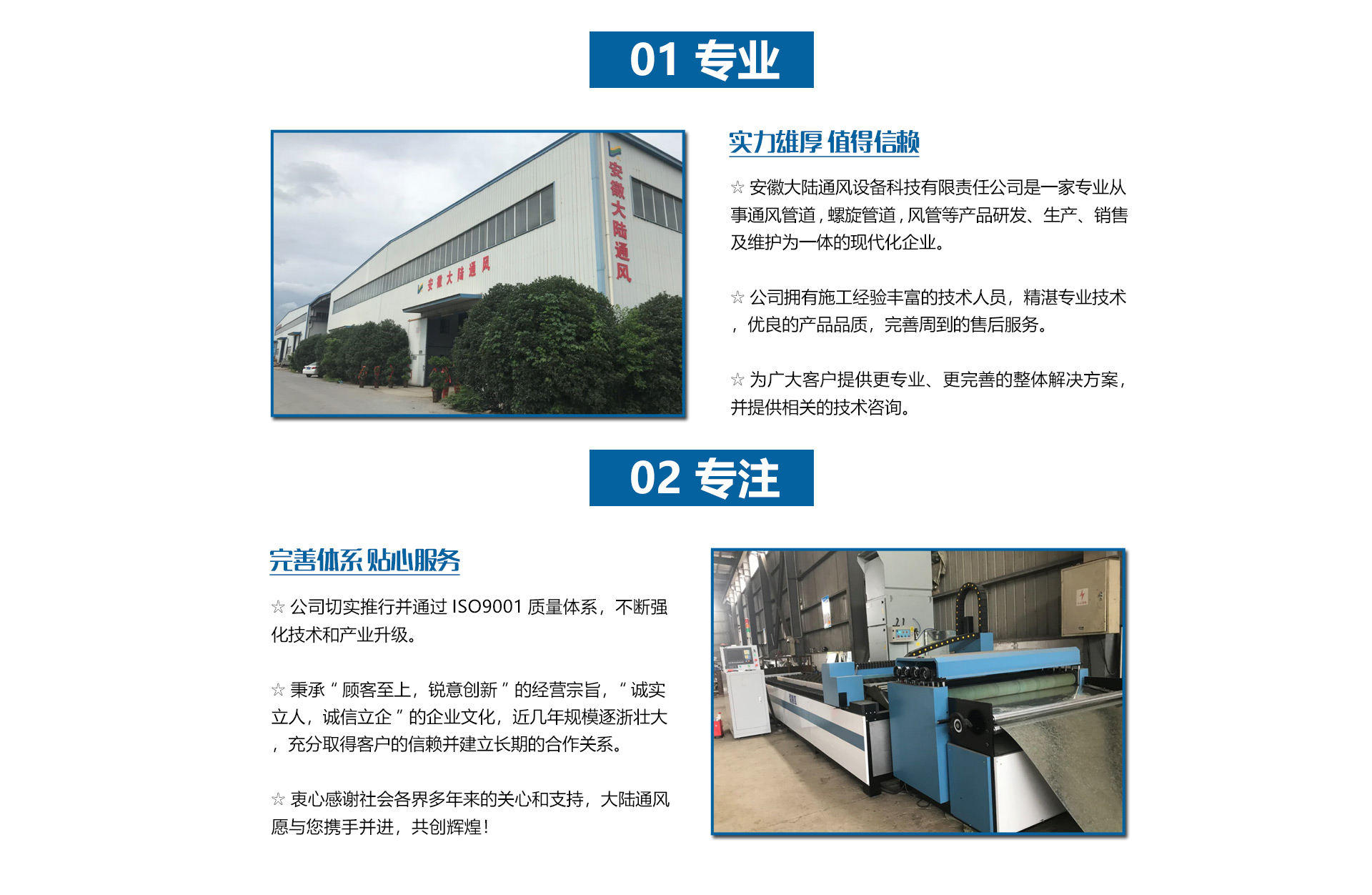 安徽大陸通風設備科技有限責任公司加工共板法蘭風管、螺旋風管、角鐵法蘭風管、插接式風管。價格合理。質量保障。是國內生產和研究通風管道的企業,工廠坐落于經濟發達的安徽省合肥市。公司配備了好的自動化流水線設備和先進的制作安裝技術。